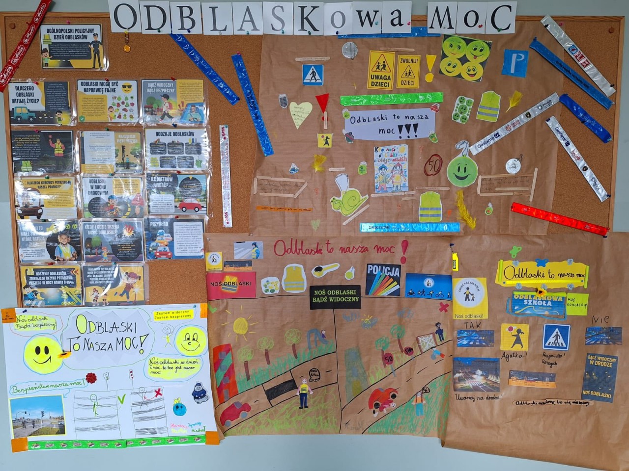 Zachowanie bezpieczeństwa w ruchu drogowym to bardzo ważna sprawa. W ramach konkursu "Odblaskowa szkoła" klasy przygotowały gazetki tematyczne.
