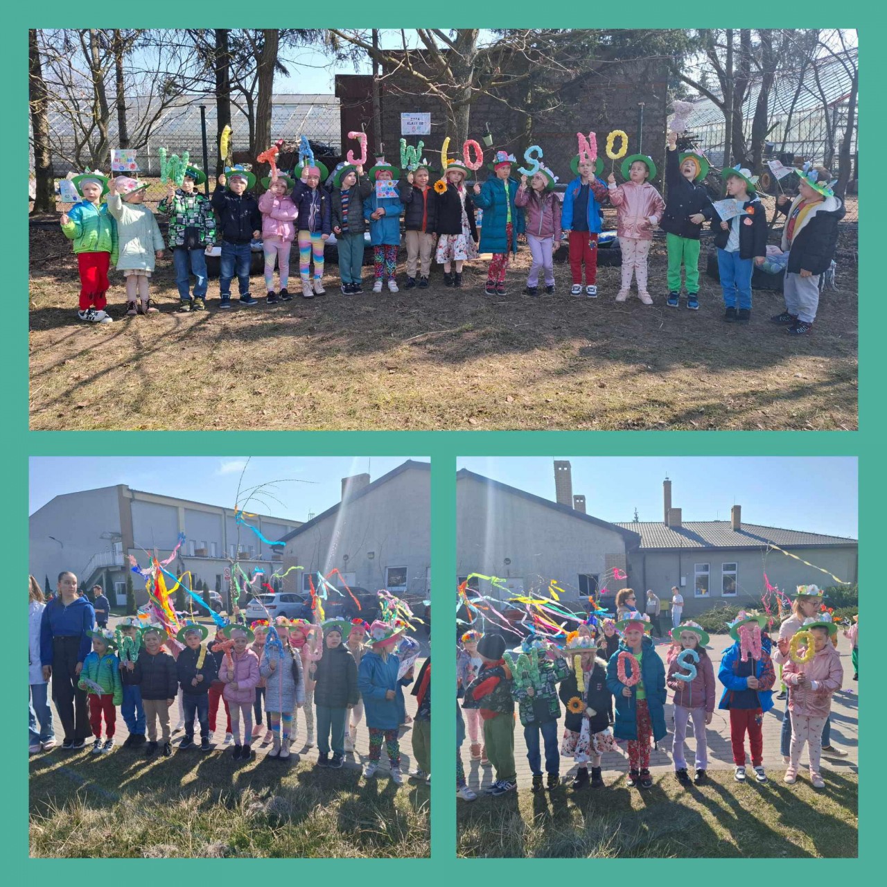 21 marca świętowaliśmy w naszej szkole Pierwszy Dzień Wiosny. Uczniowie klas 0-3 przybyli w tym dniu do szkoły w kolorowych strojach, przeróżnych nakryciach głowy, opaskach oraz w wiosennych nastrojach.